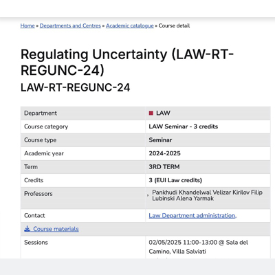 Regulating Uncertainty (seminar)