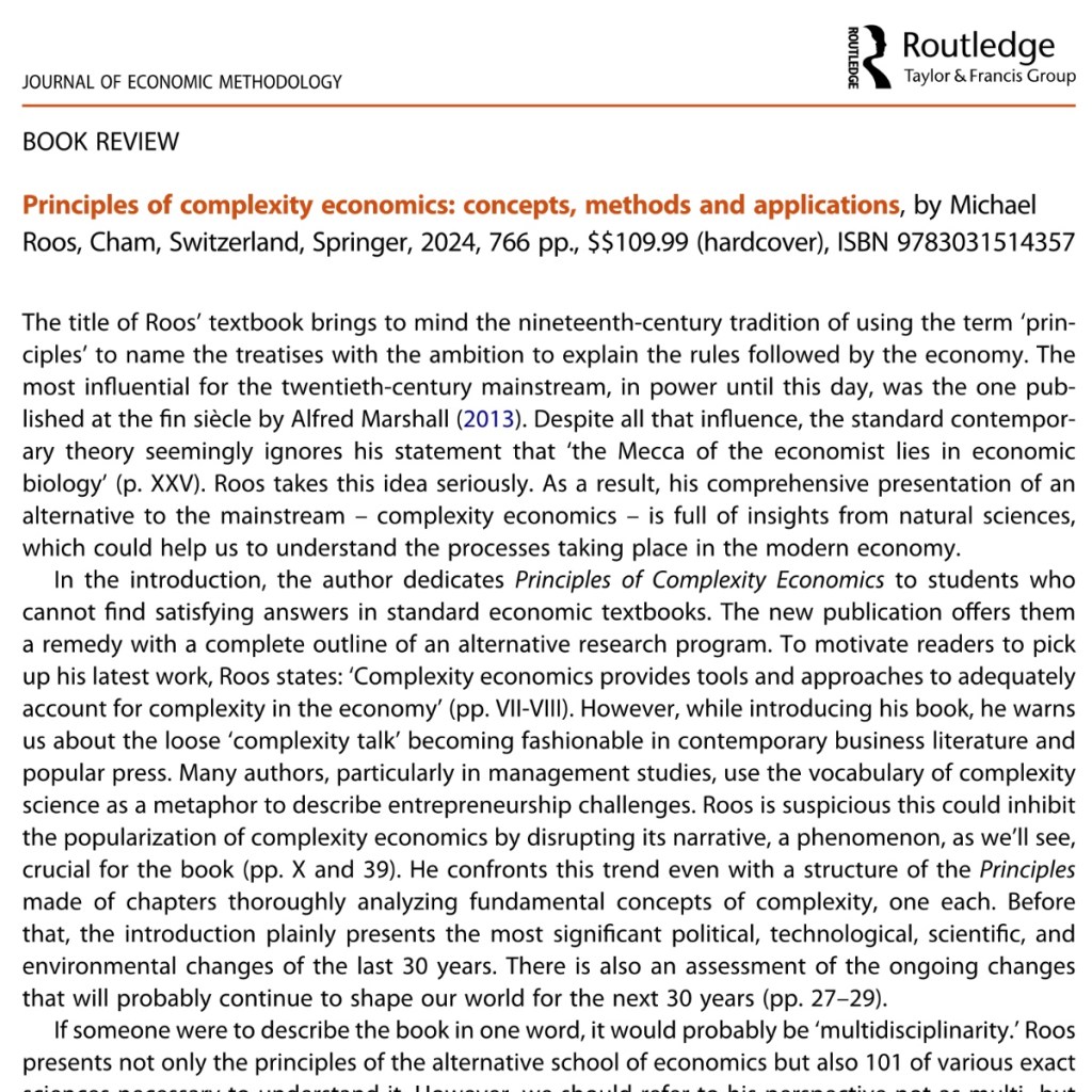Michael Roos, Principles of Complexity Economics: Concepts, Methods and Applications (book review)