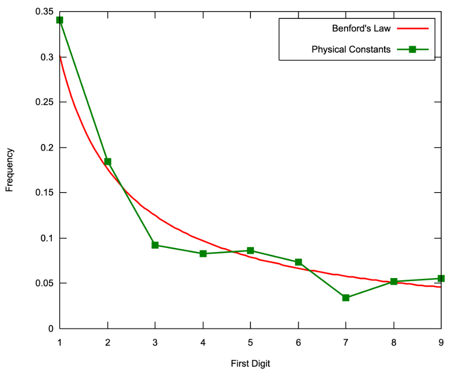 (Newcomb-)Benford’s Law tends to be most accurate when values are distributed across multiple orders of magnitude, primarily if the process generating the numbers is described by a power law (which is common in nature). Obviously, it generally applies more accurately to large data sets with numerous observations as well. Still, even relatively small sets like one holding values of crucial physical constants show stunning similarity to the pattern.
